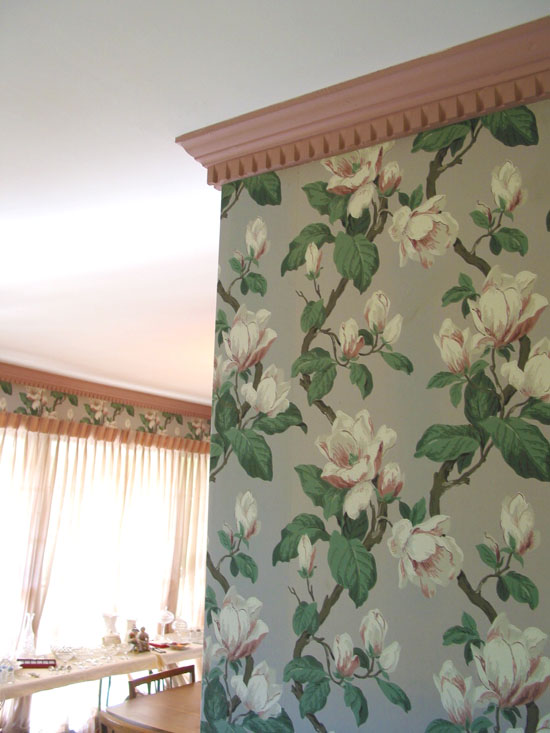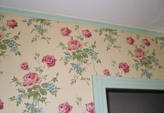 That wallpaper is SO amazingly beautiful, I adore all of it. That is my dream (besides finding a house with a pink bathroom!) is finding a house with some original wallpaper left. I know it's a long shot, but if so much was left in this house maybe I can find that here too. *fingers crossed*
