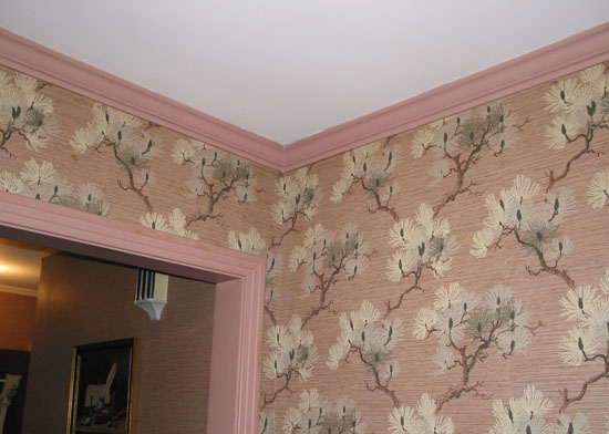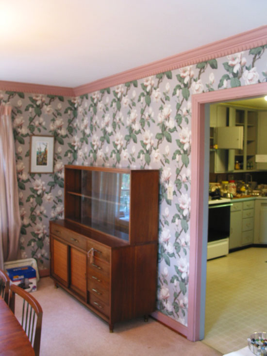 You can see the original pink grasscloth wallpaper in the hallway in the background.