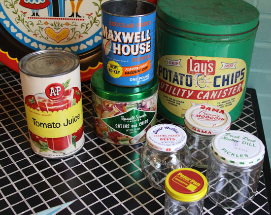 Vintage packaging. One of my biggest weaknesses. It confuses people. It confounds people. Poor Rae gets brownie points for listening to me prattle on about a 1980's bottle of lemon Joy detergent. And for finding me that A&P tomato juice can! Whoot!